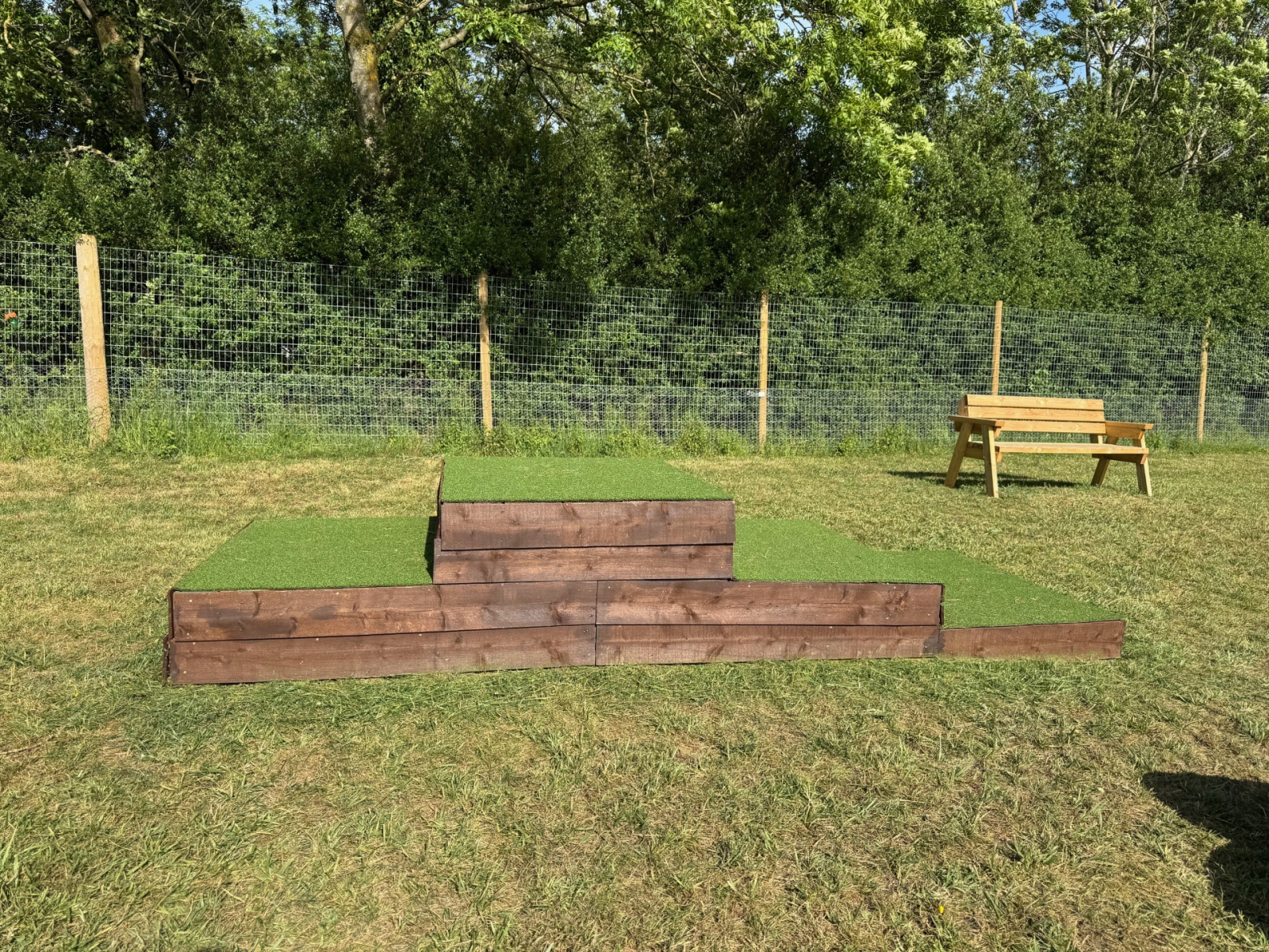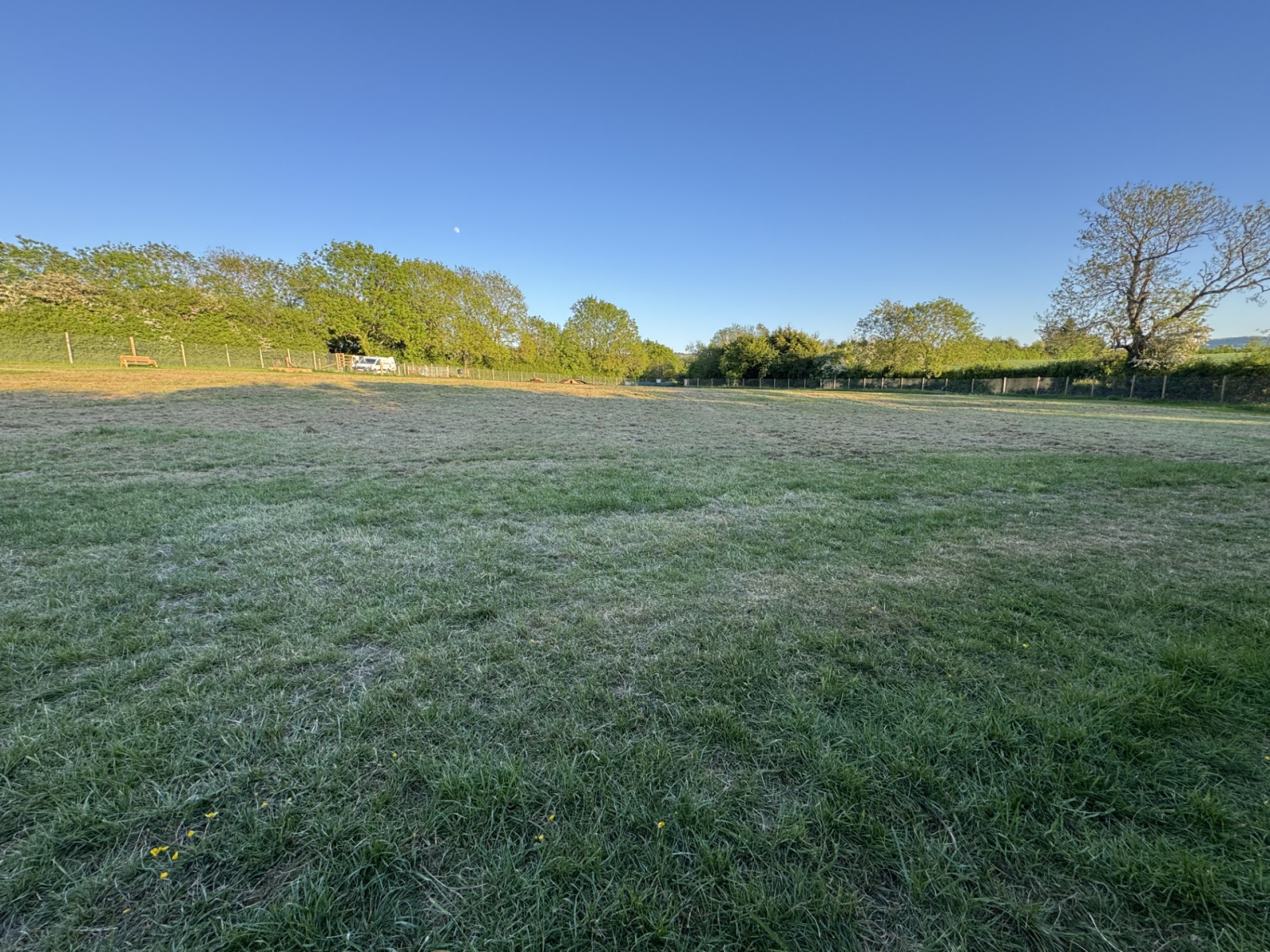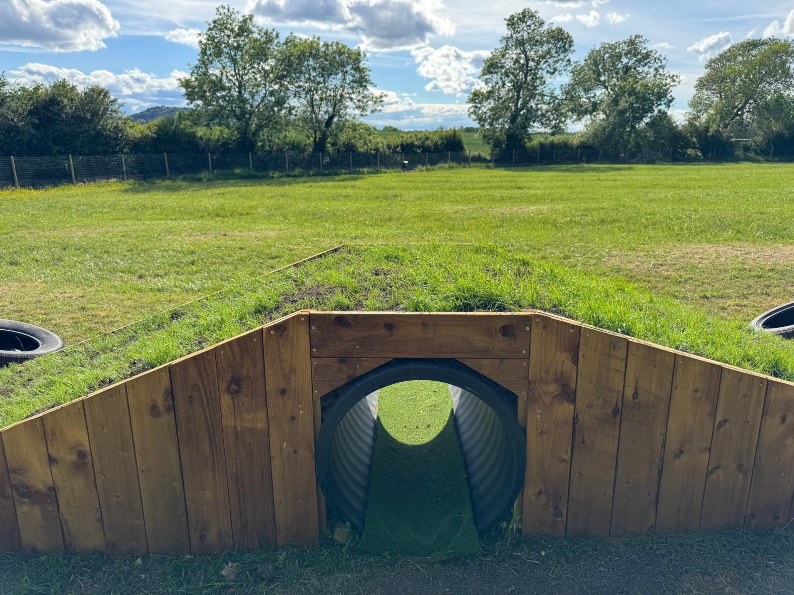 We thought you might like to see some photos of our beautiful Moochy Pooch field, located in Cheltenham, Gloucestershire. Take a look to see what you can expect when you visit! Our fully enclosed dog field features high perimeter fencing for safety, along with handy amenities like dog waste and litter bins, benches, play equipment, a first aid kit, and a convenient car park. You’ll also find lovely wildflowers and scenic views that make every visit a pleasure. If you like what you see and would like to come along, head over to our booking page to choose a day and time that works for you – and treat your dog to some fun!